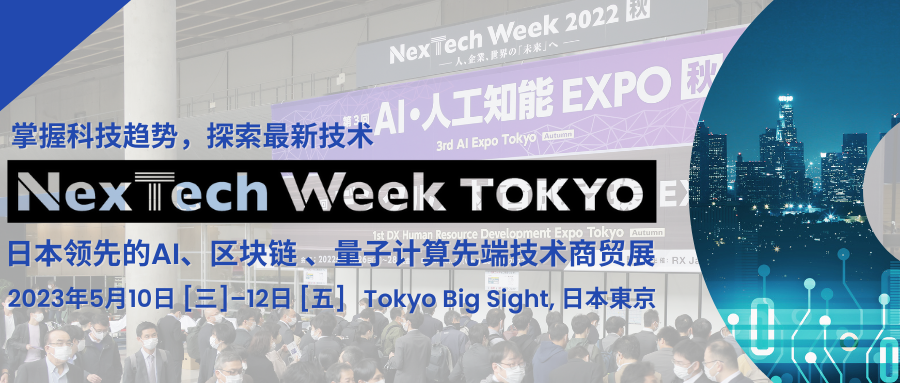 2023/04/27加入您的商務行程—邀請參訪日本先端技術盛宴!(5月10-12日@東京)文末掃碼申請免費觀眾入場券▋國內外300家展商云集 —掌握科技新趨勢NexTech Week Tokyo是日本領先的AI人工智能、區(qū)塊鏈、量子計算先端技術商貿展。今春的展會預計匯集300家展商共襄盛舉。其中包含日本知名老牌企業(yè).... -